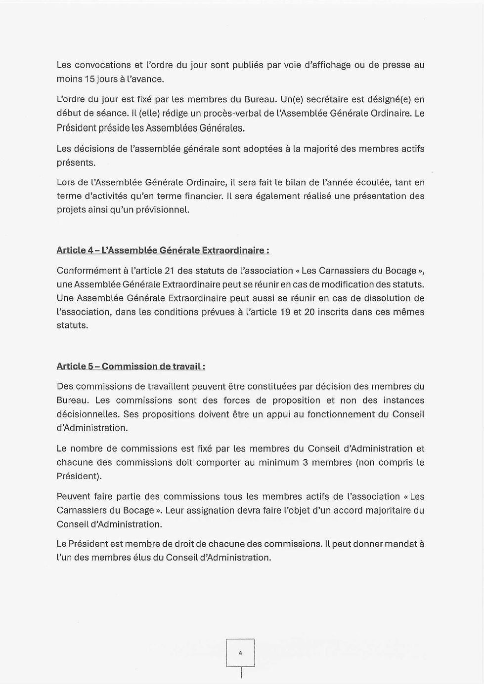 Règlement intérieur de l'association :